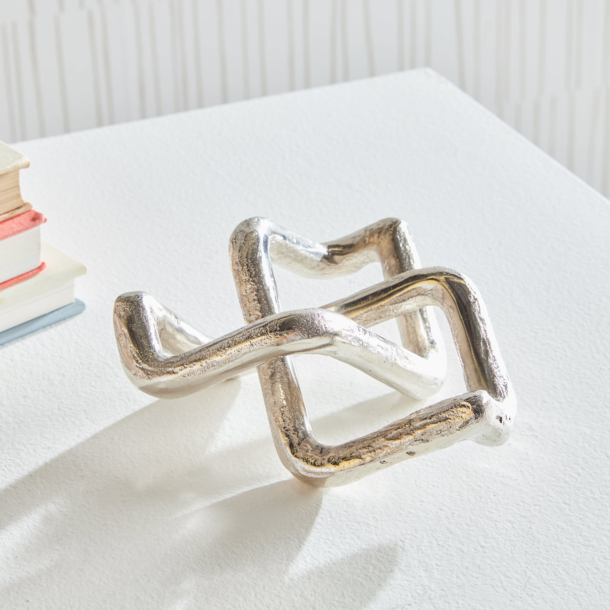 This simple silver composition in cast aluminum is a modern statement of simplicity. A great accent piece for home office, or in a styled vignette on an ottoman or coffee table.