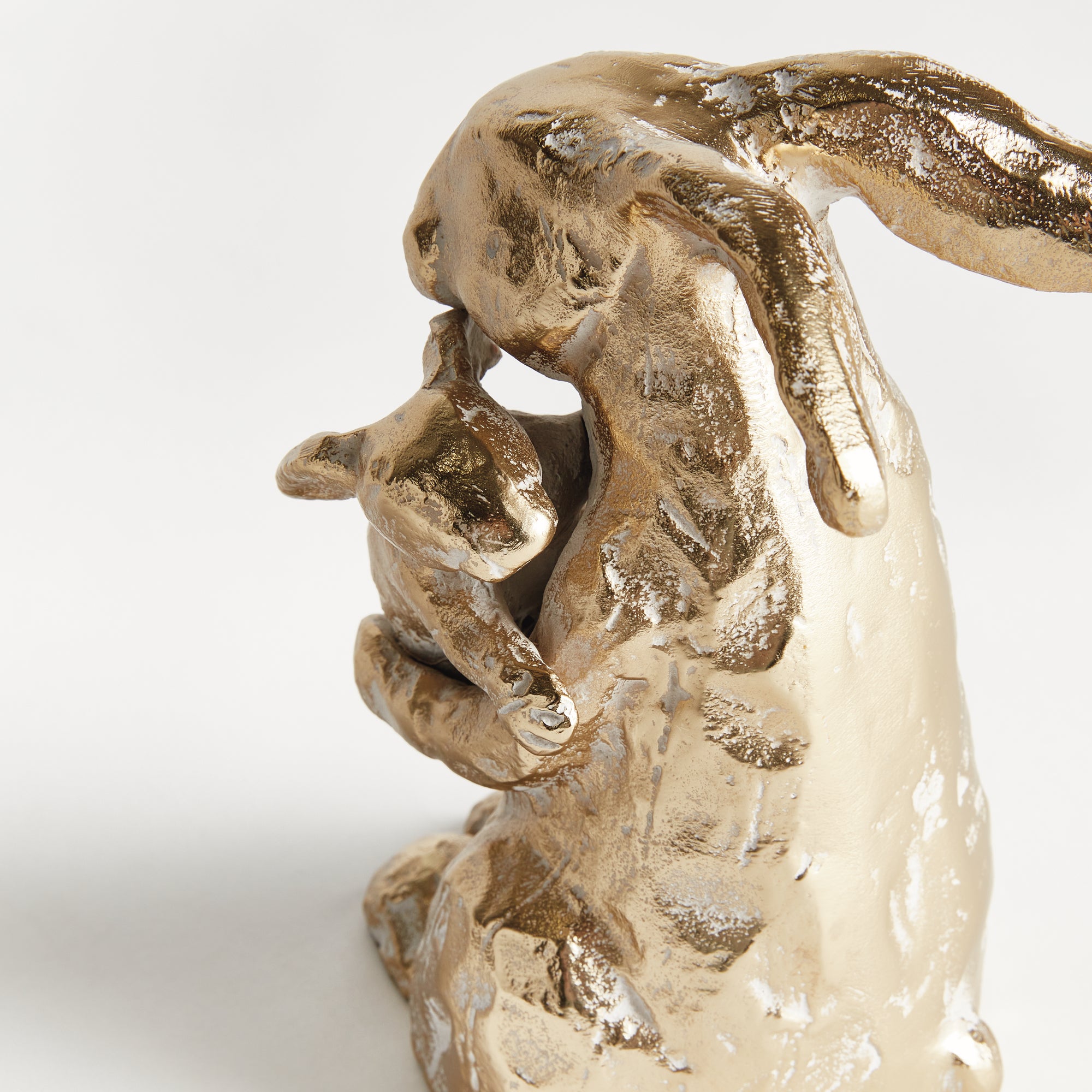 A visual metaphor of a mother's love in a white ash gold finish, this rabbit sculpture is an endearing accent for Spring or all year round. Tuck into a bookshelf or sit atop a desk or ottoman for a touch of charm.