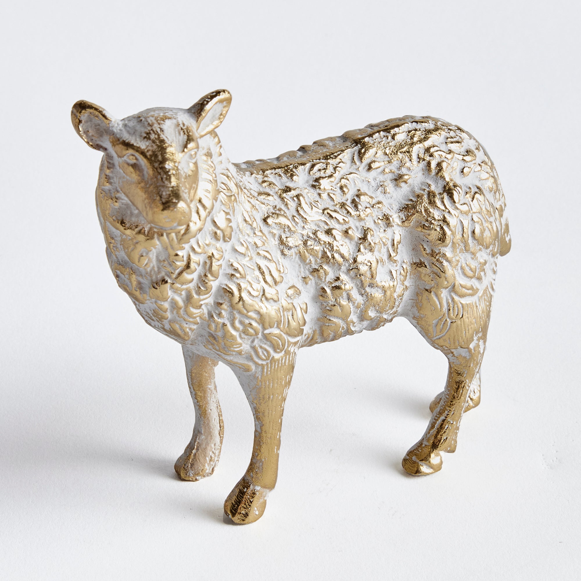 Made of a heavy cast aluminum, this curious sheep is full of charming detail. With realistic features and a white ash finish, a stately addition to side table, ottoman or bookshelf.