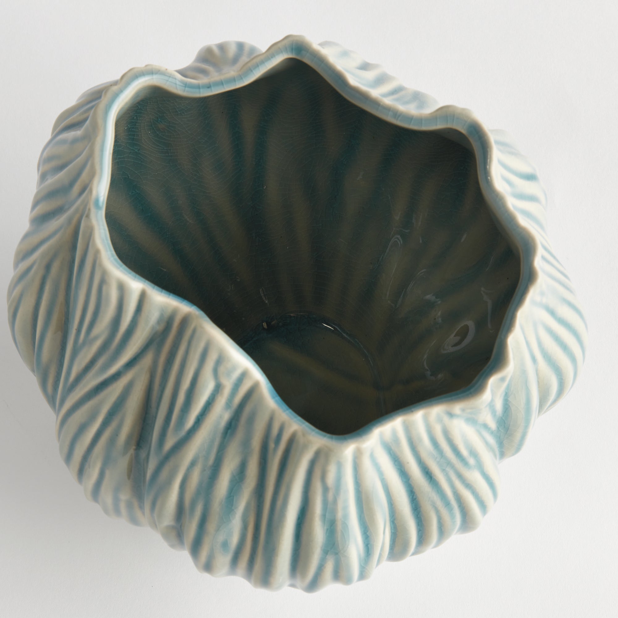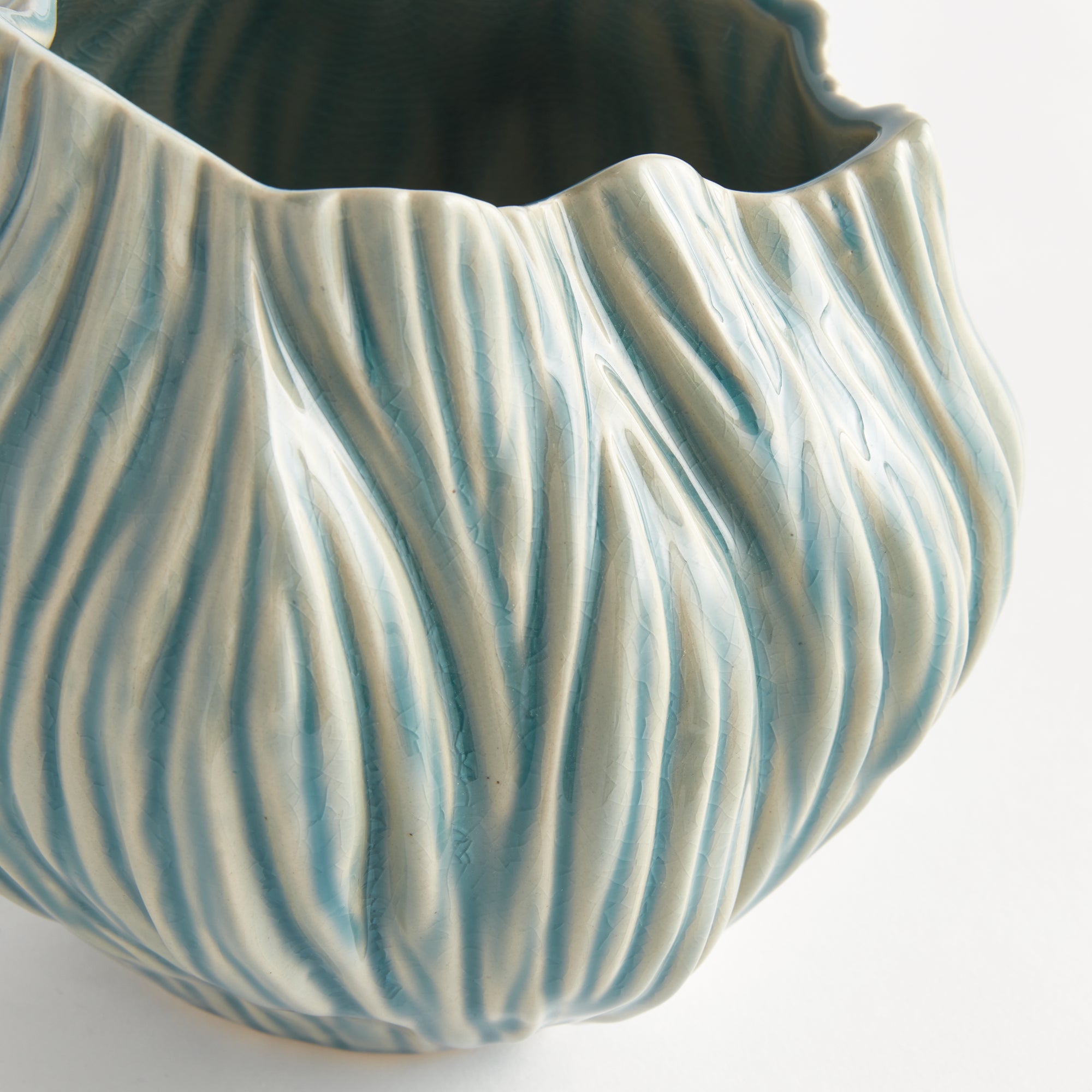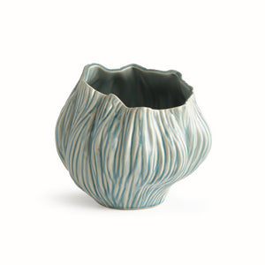 This artisan-made ceramic vase is a real beauty. The reactive glaze accentuates the nature-inspired texture of the piece. A conversation starting accent for side table, kitchen counter or ottoman.