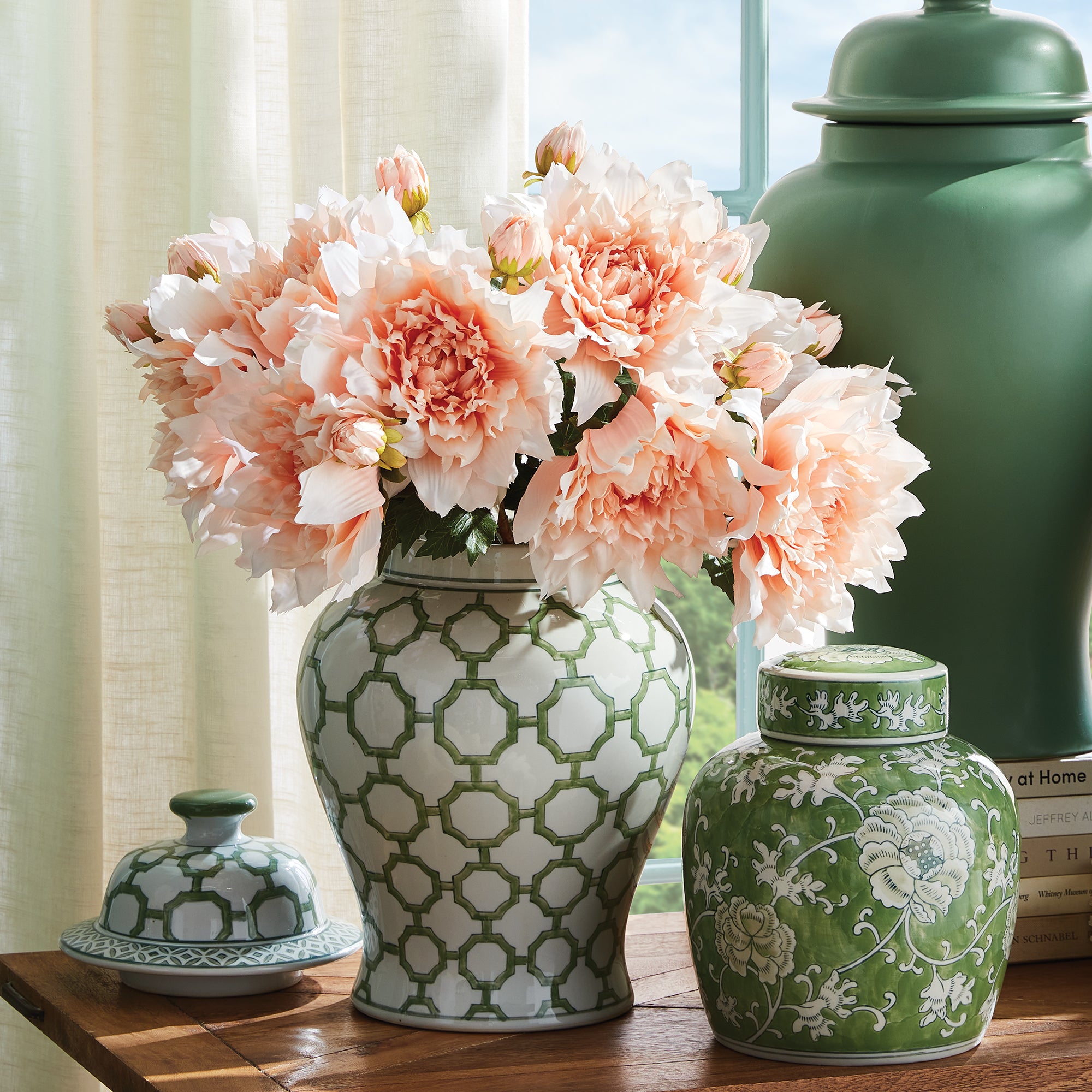 Made to look 100% realistic- you'd swear this dahlia stem was cut this morning. With a large bloom and soft life-like petals, it is sure to cheer up any space. Great for arrangement on kitchen table, home office or powder room.