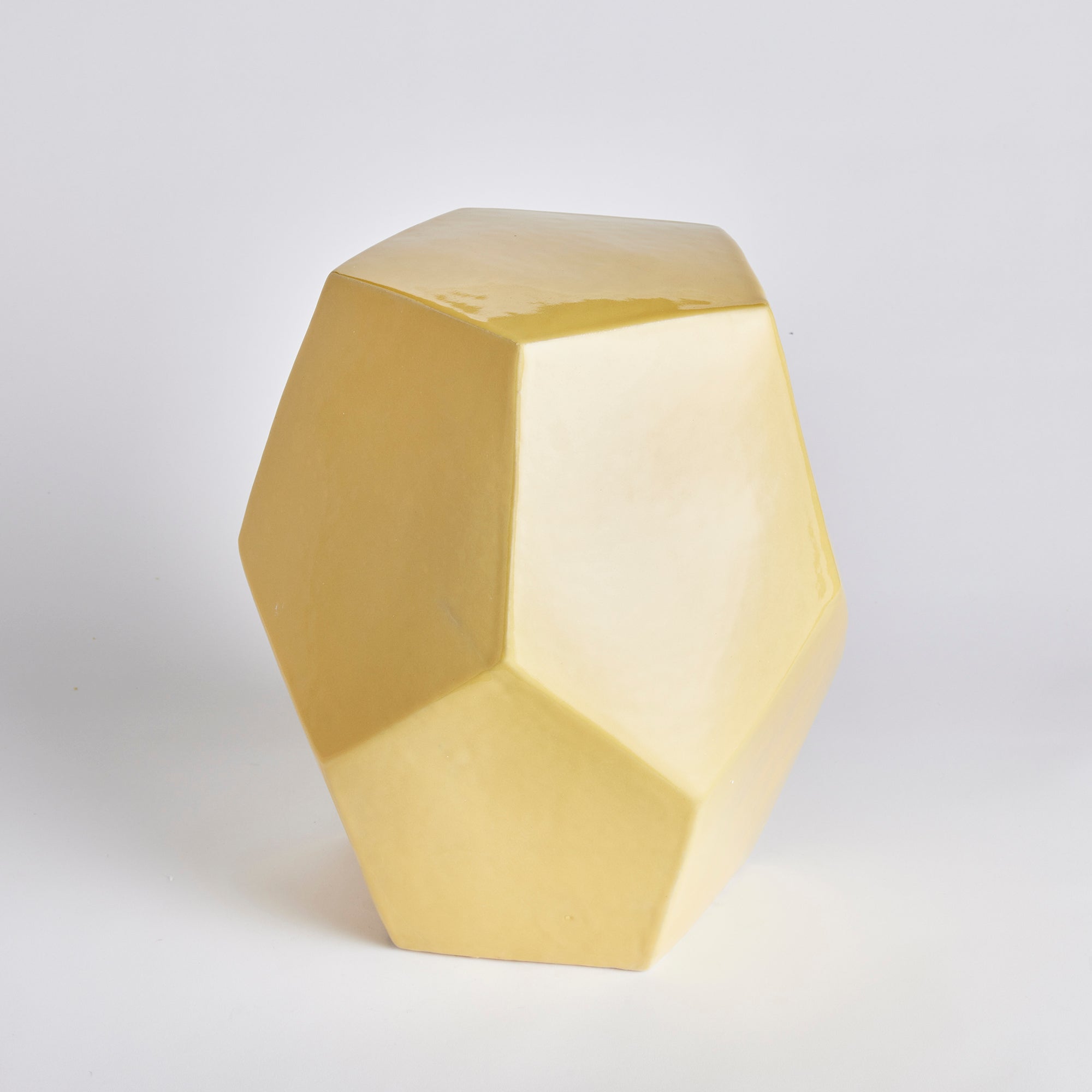 With a faceted shape and warm, marigold glaze, this stool is a stand-out piece for the modern space. Versatile, too. Use as an end table, or store a couple under console table for extra seating.