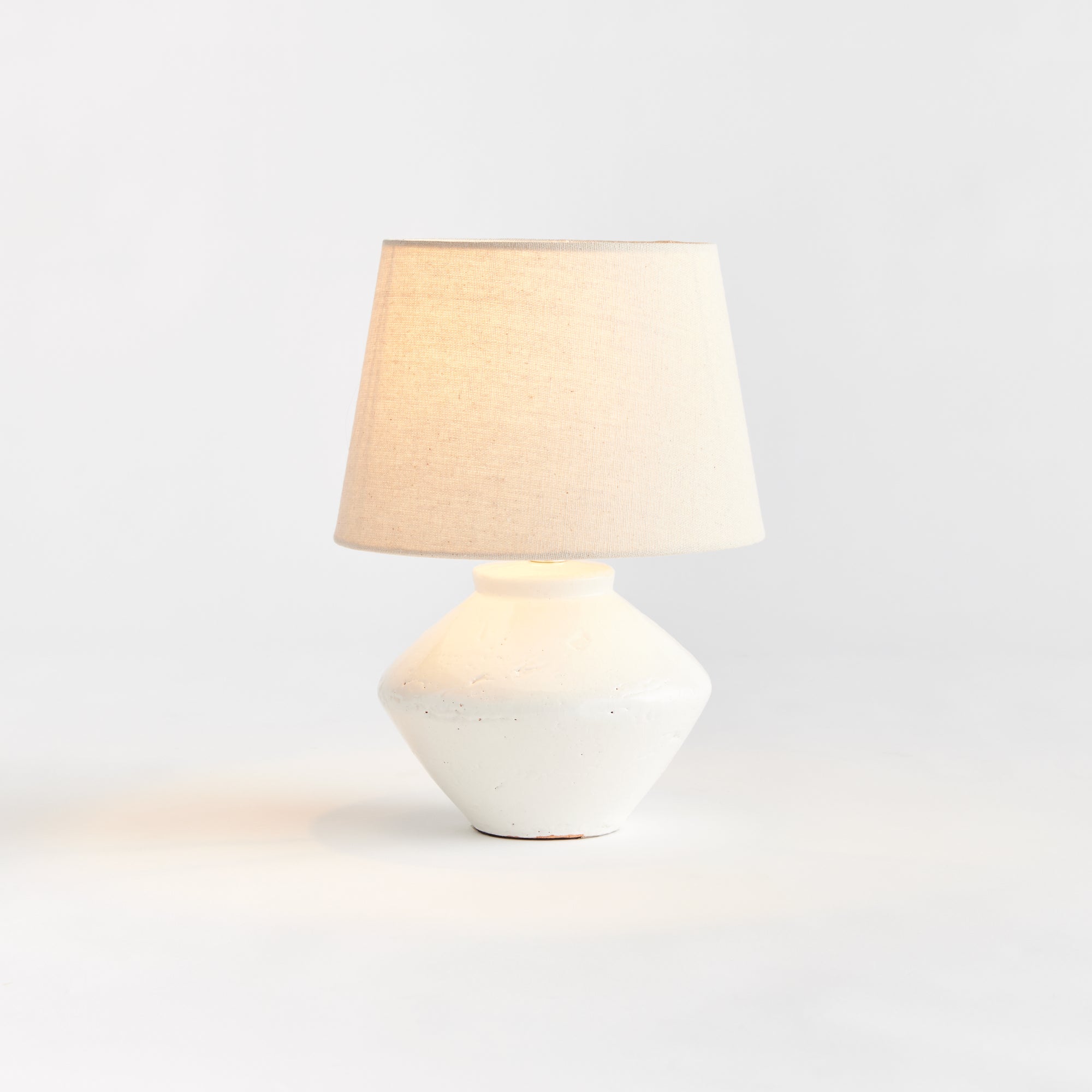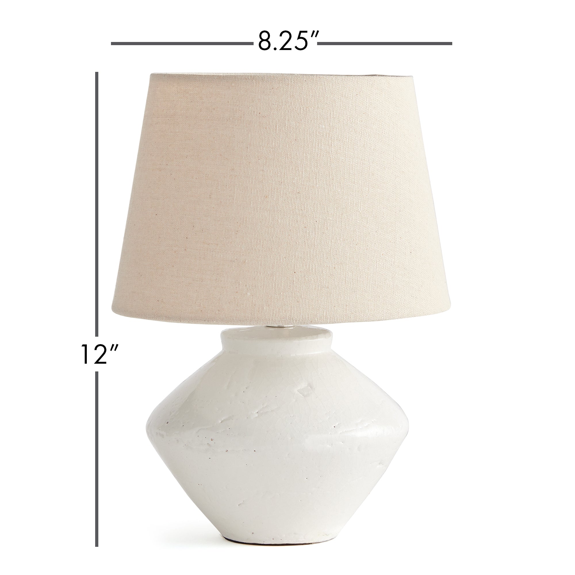 This sleek ceramic mini lamp is at home in any transitional setting. The textured cream shade and petite base make it a versatile piece. Great for kitchen counter, bookshelf or desk.