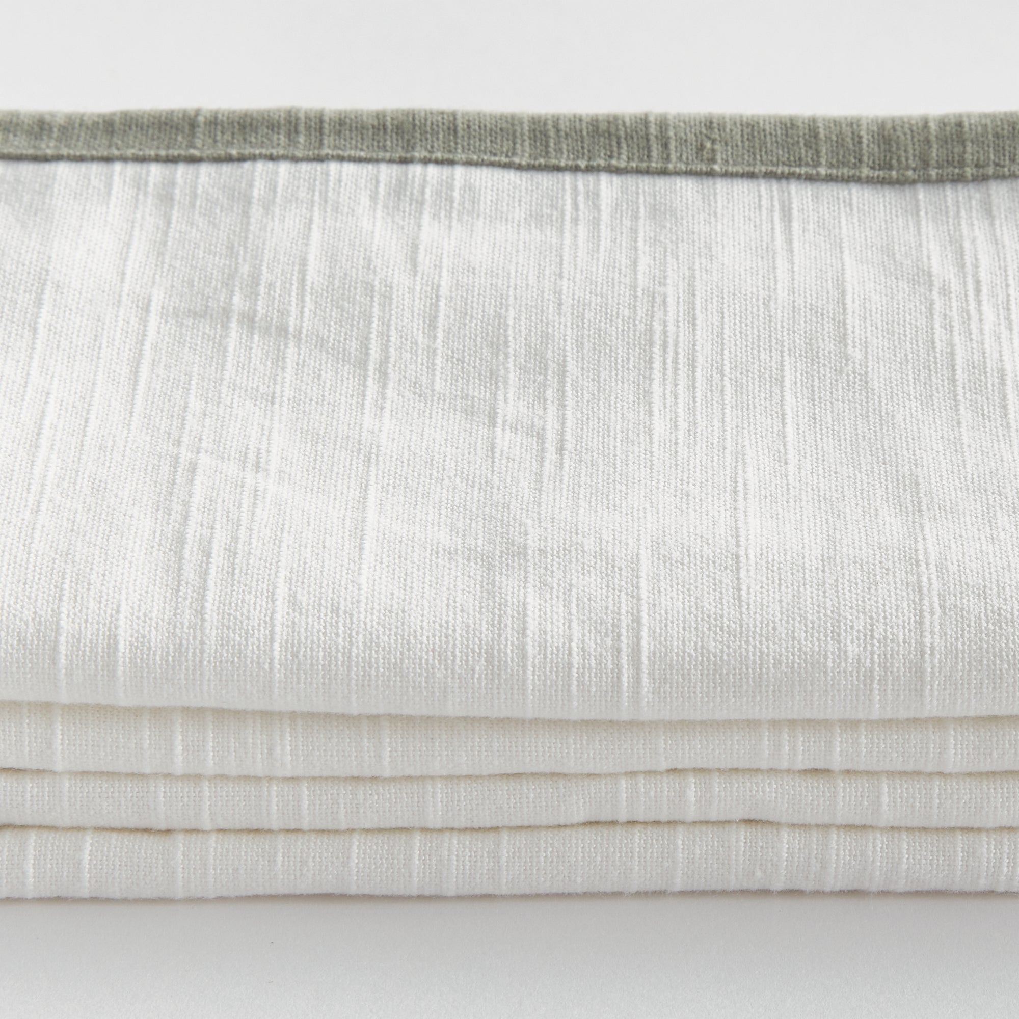 Bring a touch of softness to the table with this set of four 100% woven cotton napkins. Beautiful in tone and texture, the white & sage combination is made to add a pop of color to any tablespace.