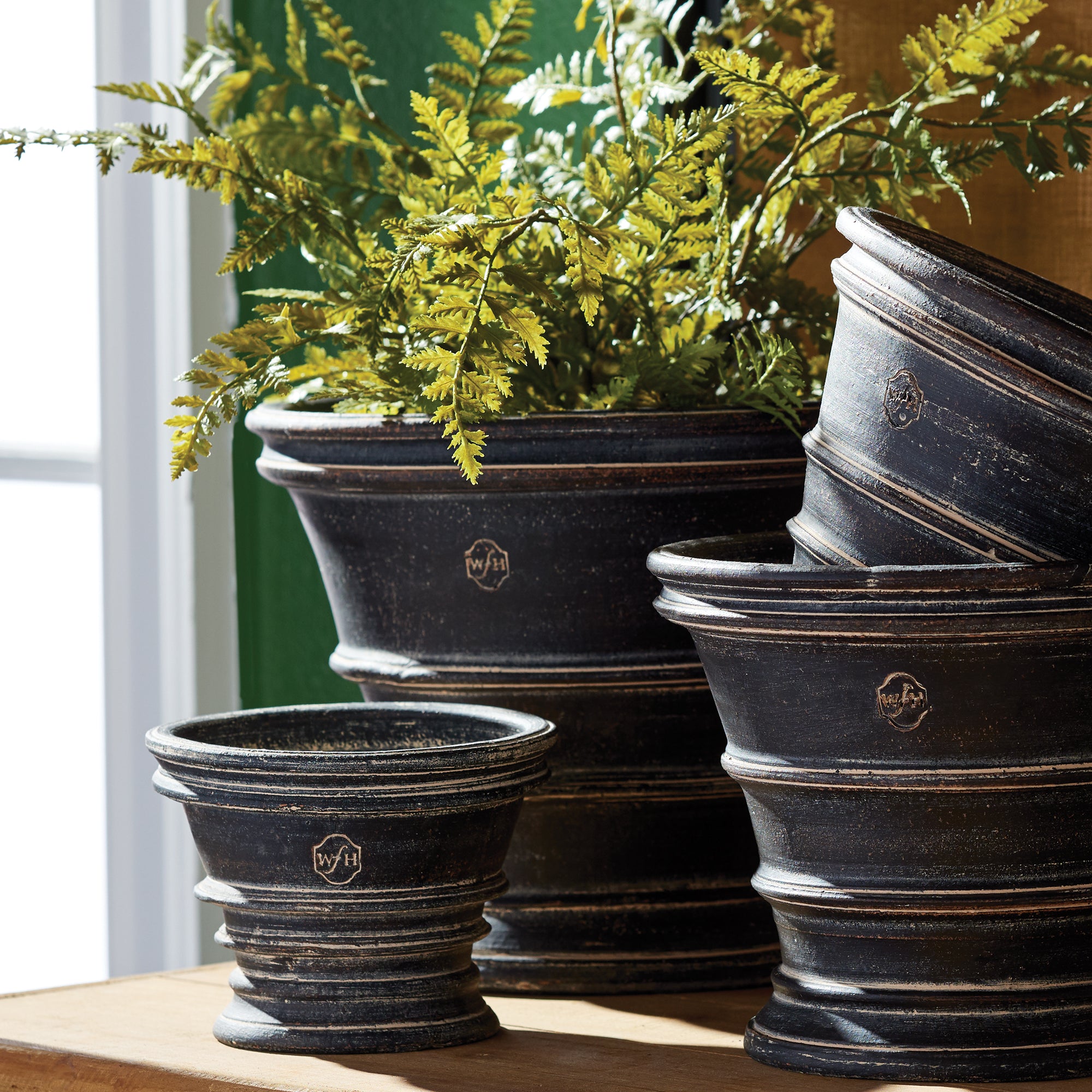 Europa is a Napa exclusive and a traditional, artisan style from Peter Wakefield. With repeated raised bands and a wide base, it adds a dynamic profile to the collection.