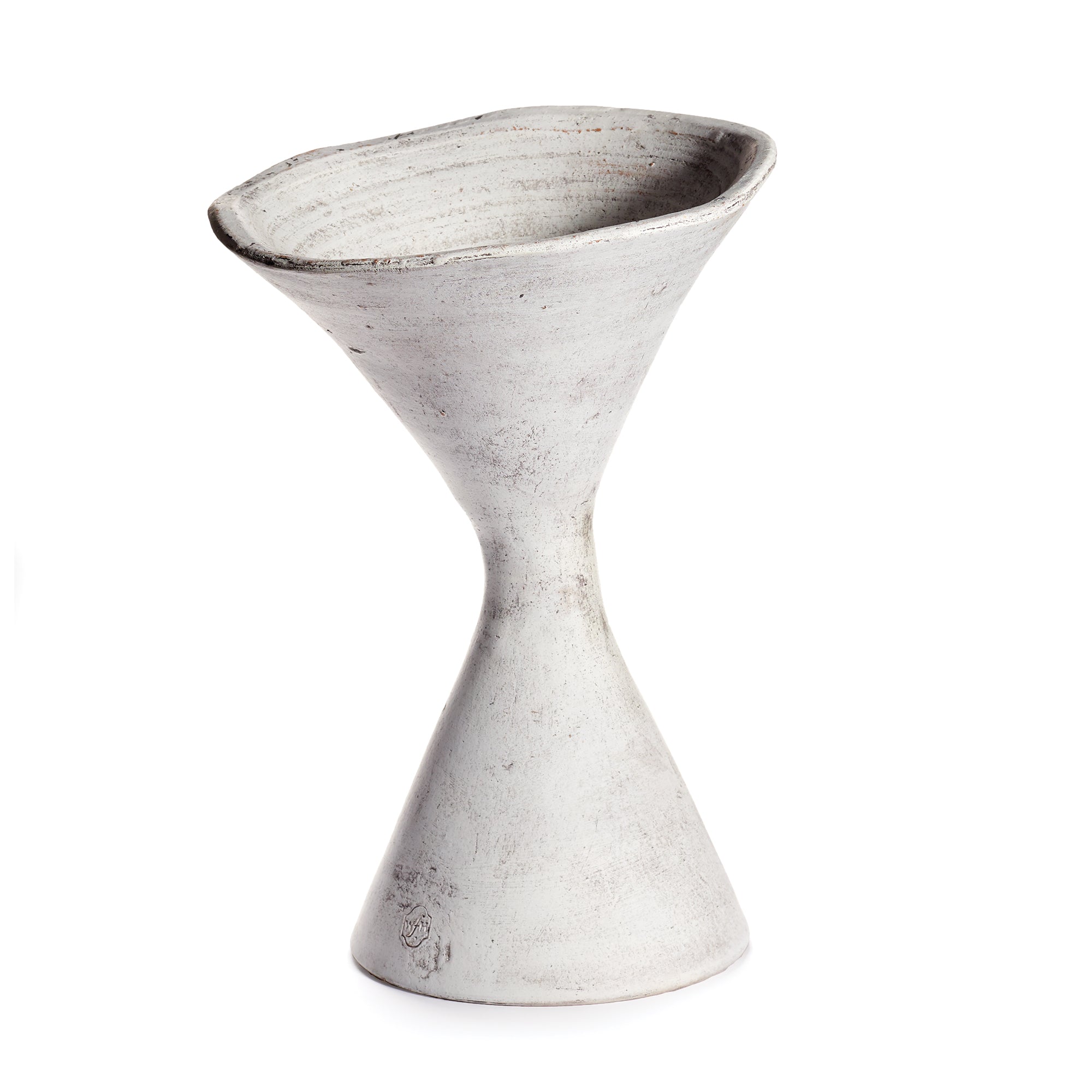 Modern form with an intentional tilt, this design is a departure from Wakefield's traditional style. The off-axis design elevates the plant, perfect for showcasing succulents, reeds or palms.