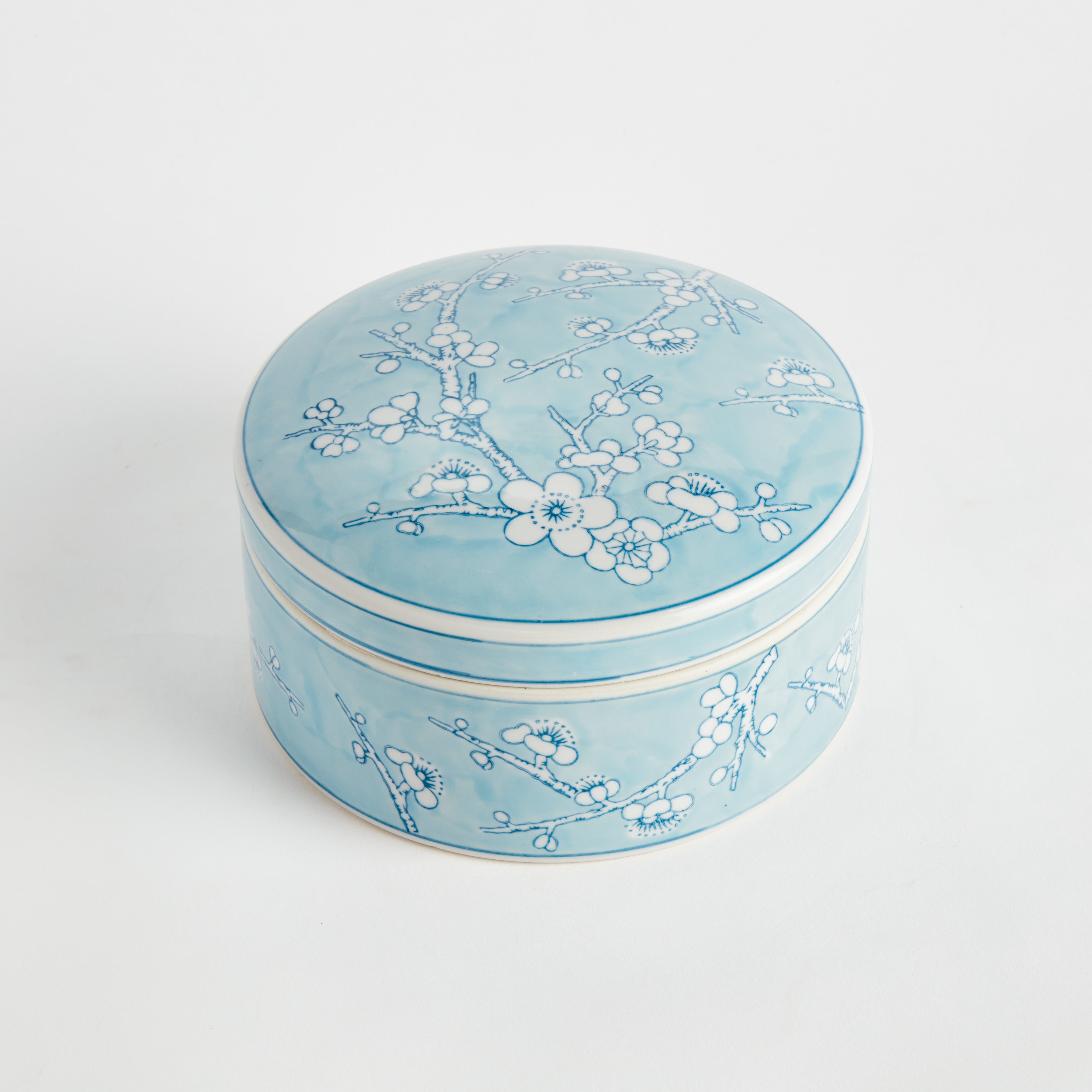 Our signature chinoiserie in an ethereal soft blue. A light, airy tone taking a cue from an on-trend, fashion forward color palette. This porcelain is painted by hand and hand-stamped, and the result is exquisite. Style atop some art books, or display on an entry console for a distinctive, traditional look.